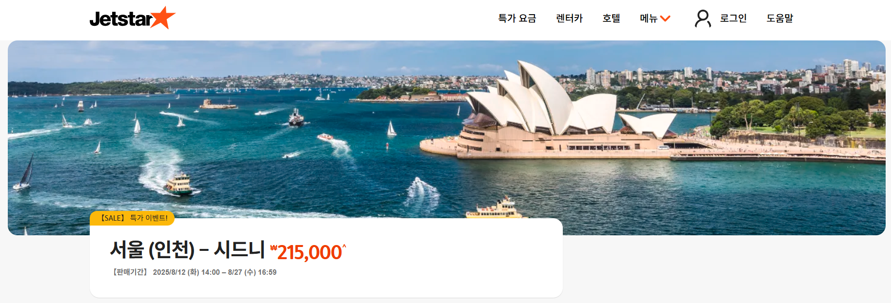 | 서울(인천) → 시드니 | ₩215,000~ | 2025-10-19 ~ 2026-03-31 | 2025-12-12 ~ 2026-02-17 |